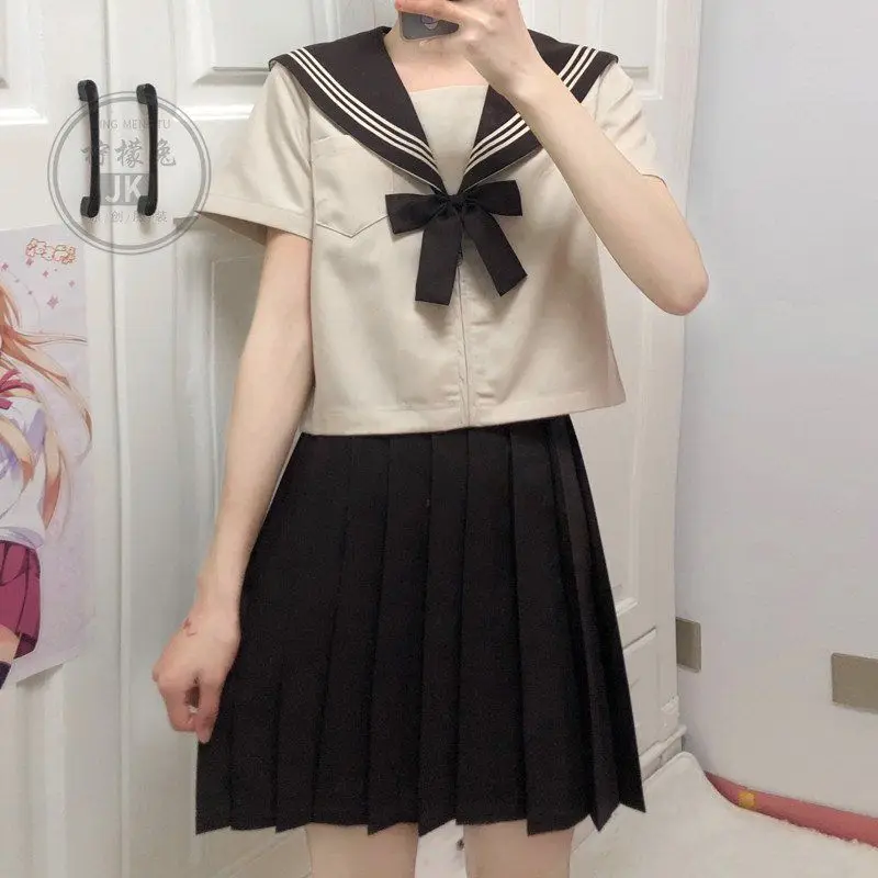 School Girl Uniform Japanese Class Navy Sailor School Uniforms Students Clothes For Girls Anime Cos Sailor Navy Suit Beige S/3XL