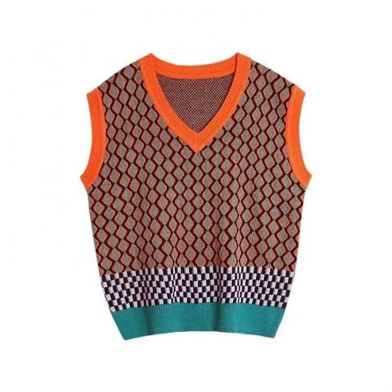 2021 Preppy Style Autumn Winter V-neck Knitted Vest Women's Sweater New Korean Loose Wild Sweater Vest Sleeveless Sweater S/M/L