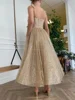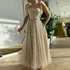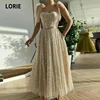 LORIE Shiny Prom Dresses Bling Bling Spaghetti Strap Cute Tea Length Sequins Night Party Gown for Graduation Celebrity Dress
