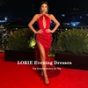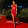LORIE Sexy Red Evening Dresses Halter Pleats Satin High Side Split Long Mermaid Arabic Prom Gown Special Celebrity Party Dress