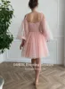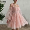 LORIE Fairy Prom Dresses Sweetheart Peach Tulle Long Sleeves A-Line Wedding Party Gown Short Graduation Robes de cocktail