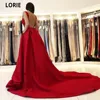 LORIE A-line Red Scoop Evening Dresses 2021 Robes De Soirée Backless Court Train High Quality Satin Pleated Prom Party Gowns