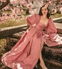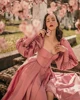 SoDigne Fashion Pink Prom Dresses Puff Sleeves High Slit Long Evening Dresses Sweetheart A-line Long Party Gowns 2021