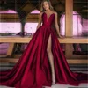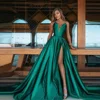 A-line High Side Slit Evening Dresses Sleeveless Sexy Deep V-neck Soft Satin Mermaid Prom Gowns Party Vestidos De Fiesta Custom
