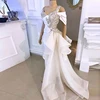 African White Evening Dresses Long Luxury 2021 Off Shoulder Beaded Crystal Overskirt Dubai Women Formal Wedding Party Party Gown