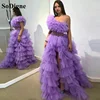 SoDigne Ruffled Tulle Prom Dresses Long One Shoulder Split Tiered Purple Evening Dress Women Party Night Gowns Vestidos