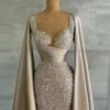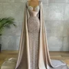 Luxury Evening Dresses Champagne Satin Beading Sweetheart Floor Length Sequined Mermaid Prom Gown Custom Made Vestidos De Fiesta