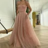 Pretty Prom Dresses For Girl Thin Straps Tulle With Shinny Formal Party Gown A Line Elegant Long Robe De Soriee 2021 Zipper Back
