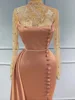SoDigne High Neck Pink Party Dress Appliques Butons Side Split Long Sleeves Prom Dresses Evening Gowns Vestidos De Festa