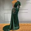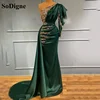 SoDigne Mermaid Evening Dress One Shoulder Beaded Lace Long Sleeves Green Satin Arabic Muslim Prom Gown Formal Party Dresses