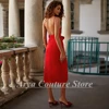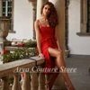 Sexy Red Spaghetti Straps Cocktail Dresses 2022 Sleeveless Backless Knee Length Party Gowns Evening Dresses with Bow Customized