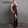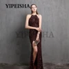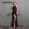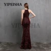 Glittery O-Neck Front High Split Evening Dress Mermaid Simple Sequined Formal Prom Party Gown robes de soirée vestidos de fiesta