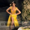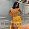 Luxury Long Evening Dress sexy Satin Mermaid Sequined High Slit Plus Size Prom Dresses Spaghetti Straps Yellow Gown With Women