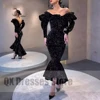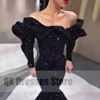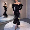 Vintage Sparkling Sequined Mermaid Cocktail Dresses Long Sleeve Lady Club Celebrity Party Dress Black Sexy Evening Gowns