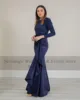 Sevintage Soft Satin Saudi Arabia Mermaid Prom Dresses Long Sleeves Lace Dubai Evening Party Dress Custom Made Women Party Gowns