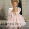Light Pink Cute Girl Cocktail Dresses A-line Chiffon Backless Mini Dress Prom Dress Long Sleeves Ball Gown With Sequins Beaded