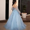 LORIE Light Blue Evening Dresses Long 2021 Sweetheart Tulle Princess Graduation Formal Prom Party Gowns Lacing Plus Size