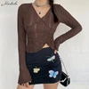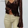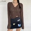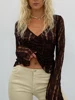 Macheda Autumn Solid Sexy Mesh See Through T Shirt Women Long Sleeve V Neck Clothing y2k Lady Fashion Slim Top 2021 New