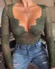 2021 Spring Summer Women Sexy Eyelash Lace Hollow Out Bodysuit Ladies Solid V-Neck Casual Body Top Patchwork Jumpsuit Femme New