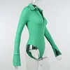 Long Sleeve Bodysuit For Women Tops Turndown Collar Skinny Body Suit Sexy Streetwear Club Party Outfits Female Bodysuits