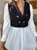 SRUBY Double Breasted Flap Detail Crop Blazer Vest Without Blouse Women Solid Shorts Suits Summer Elegant Notched Crop Top