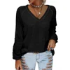 Elegant Lace Stitching Long Sleeve Top Women Autumn Winter New T Shirts V-Neck Solid Color Office Lady Tops Femme 2021 Clothing