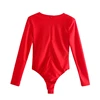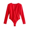 Hot Sale Women Deep V Neck Shoulder Pad Bodysuits Casual Female Long Sleeve Slim Tops T1561