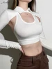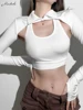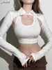 Macheda Spring 2022 New sleeveless halter top stretch soft midriff top with lapel long sleeves over a sexy fashion two-piece set