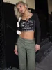 Macheda 2022V Slim collar crop top lady's letter print cute cute street fashion short top fashion girl's clothing collection