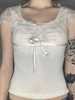 HEYounGIRL Lace Patchwork Elegant Women Cropped Tops Y2K Short Sleeve Cute Bow White T Shirt Folds Casual Fashion Basic Pullover