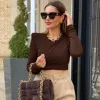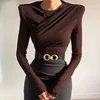 Women's T Shirts Spring 2022 New Solid Color Pleated Long Sleeve Sexy Top Shoulder Pad T-shirt