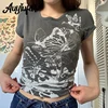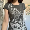 Auyiufar Fairy Grunge Retro Short Sleeve Tshirt Y2k Butterfly Print Aesthetic Goblincore Casual Basic Slim Top Women Outfits New