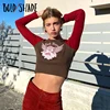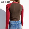 Bold Shade Indie Grunge Style T Shirt Letter Print Patchwork Long Sleeve Skinny Top Streetwear 90s Goblincore Tee Shirts Autumn