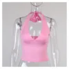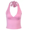 2022 NEW Hbenna Halter Crop Top Women V-Neck Sexy Backless Tank Top Women Sleeveless Pink Top Elastics Skinny Clubwear Summer