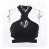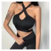 2022 NEW Halter Off Shoulder Hollow Out Clubwear Tank Vest Crop Tops 2022 Sexy Summer Solid Color Bodycon Party Tank Streewear