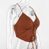 2022 NEW Sexy Bandage Straps Crop Tops Women Elegant Ribbed Hollow Out Backless Sleeveless Top