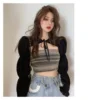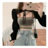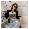 2022 NEW Black Blouse Shirt Women's Autumn Puff Sleeve Slim-Fit Long-Sleeve Blouse Design Non-Mainstream Ultra-Short Top