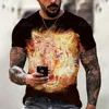 Men's Short-sleeved O-neck Casual Trendy T-shirt Street Harajuku Style Oversized Street Top 3D Lion Print T-shirt