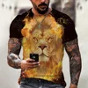 Summer Plus Size Streetwear 3D Lion Print T-shirt Men's Short-sleeved O-neck Casual Trendy Fashion T-shirt Punk Fashion Top