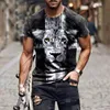 Men's Casual Fashion Fashion Clothing 3D Wolf Print T-shirt O-neck Short-sleeved Street Harajuku Style Oversized Short-sleeved