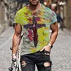 2021 New 3D Cross Skull Print T-shirt O-neck Urban Trend European and American Men's Short-sleeved T-shirt XXS-6XL