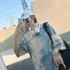 Summer T-shirt for men women tie-dye o-neck loose top all-match oversize couple half-sleeved shirt hip-hop Harajuku Korean style