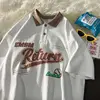 Summer polo shirt for men women American retro short-sleeved top freshing academy all-match niche letter printing t-shirt chic