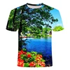 3D landscape printed men's shirt large round neck short sleeve summer T-shirt