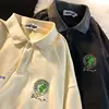Cotton Polo collar black t-shirt women high street spring autumn 2021 new loose couple all-match full-sleeved shirt streetwear