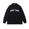 Poetry | Embroidered Letter Polo Shirt Long Sleeve T-shirt Men's Ins Street Tide Brand Loose Semi-open Collar T-shirt Trend
