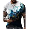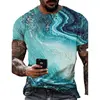 Men's Oversized Round Neck T-shirt, Summer Leisure, Harajuku Retro National Style, Fashion, Wave Pattern, 3D Printing, 2021