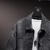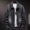 2021 New Autumn Men's Dark gray Denim Jacket Fashion Casual Cotton Elasticity Jeans Coat Male Brand Clothes
