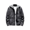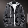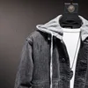 2021 Top men's Hooded denim jacket lightning Embroidery Gray Jean Jacket Trendy Denim Coat Top Outerwear