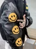 Hip Hop Jacket Men Baseball Coats Bomber Furry Smiley Patchwork Color Block Casual Jacket Womens Harajuku Fashion Streetwear Men